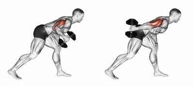Grab hold of a suitable weight dumbbell and take position in a split stance. The leg on the same side as your lifting arm is back; the leg on the same side as your non-lifting arm is forward and you are placing the body weight on the front thigh. Setting the forearm on that thigh can help with balance. Your torso is at a 45 degree angle to the floor and you are bent only from the waist, not arching your back.
